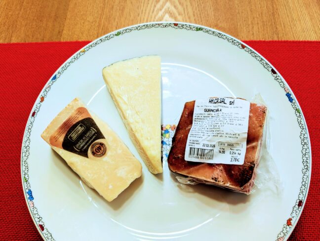 先生からイタリアのお土産で、現地のお肉とチーズをいただきました。