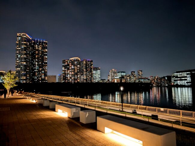 無事にお買い物して外に出ると、辺りはすっかり夜景に。