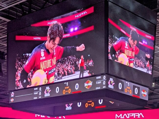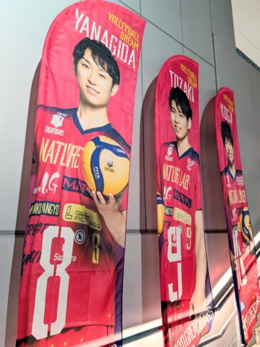 プレシーズンマッチではまだ飾られていなかった、今季ユニの新しい幟に出会えました。