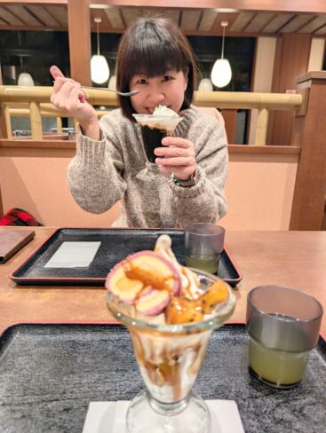 私はおいもパフェ、真希ちんはコーヒーゼリーフロート。