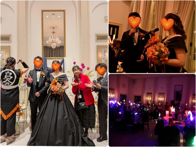 再登場の際、新郎新婦はハイキュー映画の主題歌・SPYAIR「オレンジ」を歌いながら入場、我らはペンライトを振りまくり、さながらライブ会場に。